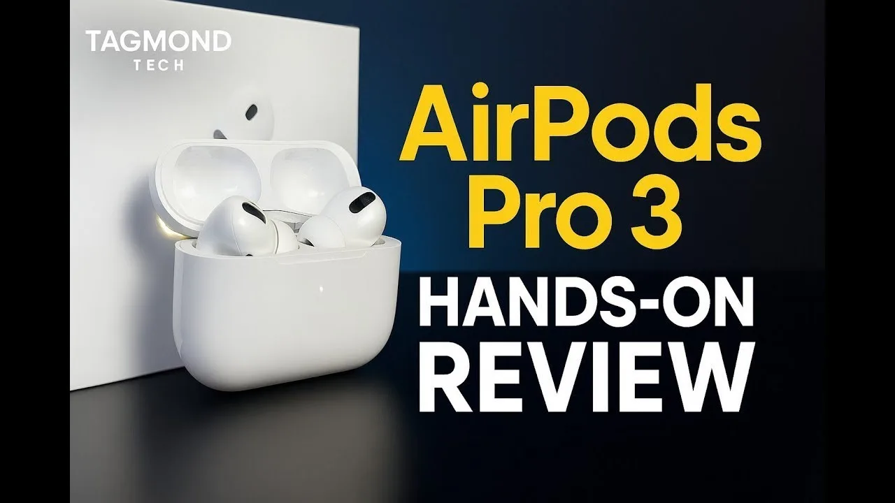 The reviewer presents a first hands-on look at the AirPods Pro 3, …