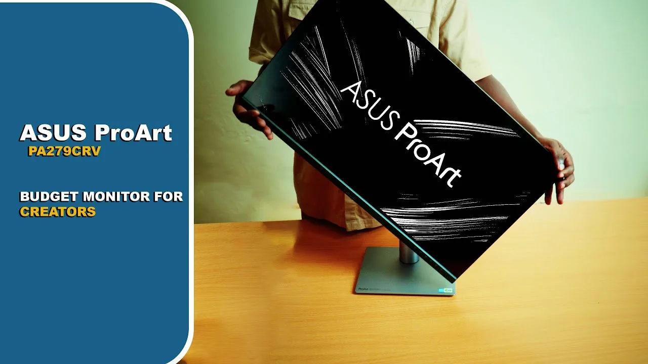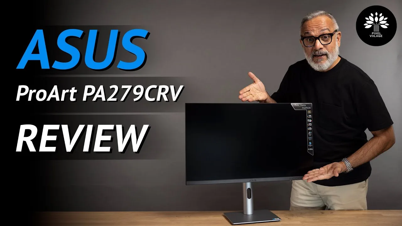 The reviewer, a wedding photographer and YouTuber, tested three Asus ProArt monitors including the PA279CRV. While the video primarily focuses on the high-end PA32DC (OLED) and PA32UCX-BK (MiniLED) models, the PA279CRV is briefly introduced as a "mega budget 27-inch 4K panel." The reviewer was initially skeptical about Asus's creative industry offerings, associating the brand more with gaming. The PA279CRV appears positioned as an affordable entry point in the ProArt lineup, though detailed testing results for this specific model are not provided in the excerpt.