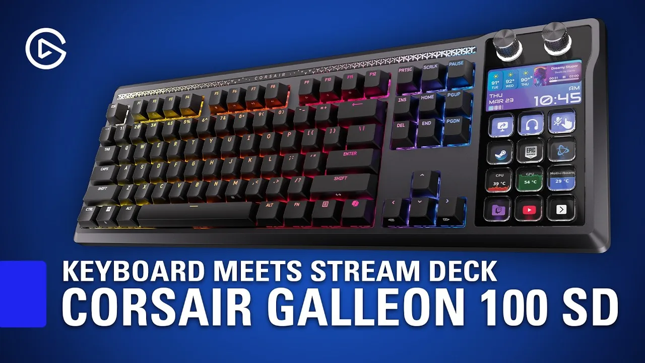 The Corsair Galleon 100 SD is a new mechanical keyboard featuring an integrated Stream Deck positioned on the right side where the numpad typically sits. The community discussion centers heavily on this placement decision, with right-handed gamers questioning why the deck wasn't positioned on the left to avoid taking hands off the mouse. The OP acknowledges it as a "great idea" and "thoughtful way to bridge products together" conceptually. However, a significant concern raised is software incompatibility—specifically that the keyboard uses Elgato's Stream Deck software rather than Corsair's flagship iCUE software, creating ecosystem fragmentation. The placement debate reveals split opinions: some find right-side placement counterintuitive for gaming workflows, while at least one user finds left-side placement potentially awkward.