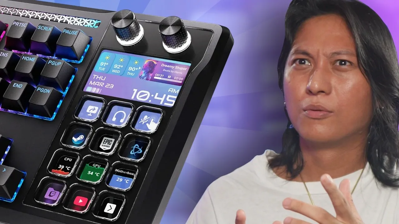A full-size keyboard featuring a built-in 5-inch LCD Stream Deck …