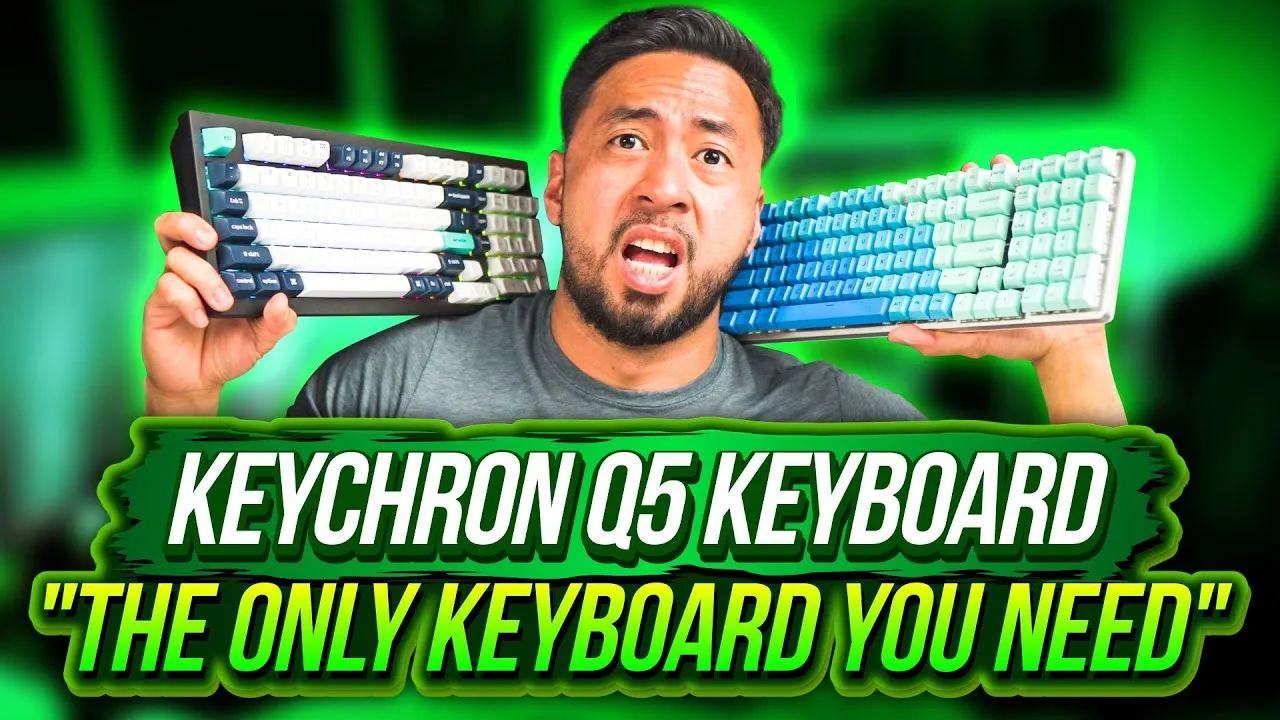 The Keychron Q5 Max is a fully aluminum, 96% wireless mechanical keyboard with a programmable volume knob. Out of the box, it comes with loud red switches and tall keycaps unsuitable for quiet environments. The reviewer recommends purchasing the bare bones kit and installing silent switches to create a near-silent typing experience ideal for streamers and office workers. The keyboard features hot-swap sockets, a 2.4GHz dongle for low-latency wireless, and web-based programming via Keyron Launcher without requiring installed software. At over $200, it represents a premium investment for a primary work keyboard.