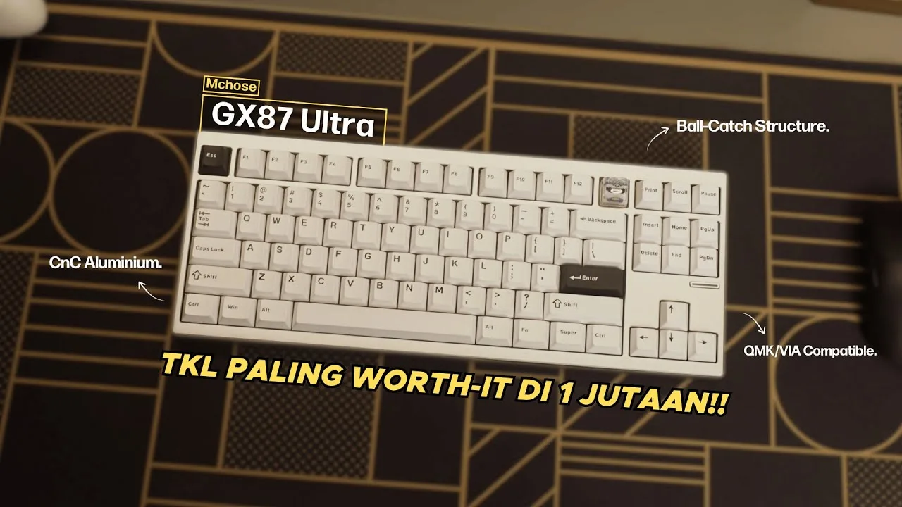 The reviewer presents the Mchose GX87 Ultra as a premium aluminum TKL …